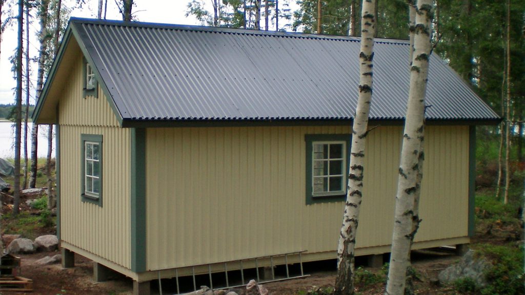 - Plåttak Plannja L 20, komplett med nockplåt, gavelbeslag, takfotsplåt, tätband, farmarskruv, strö- och bärläkt